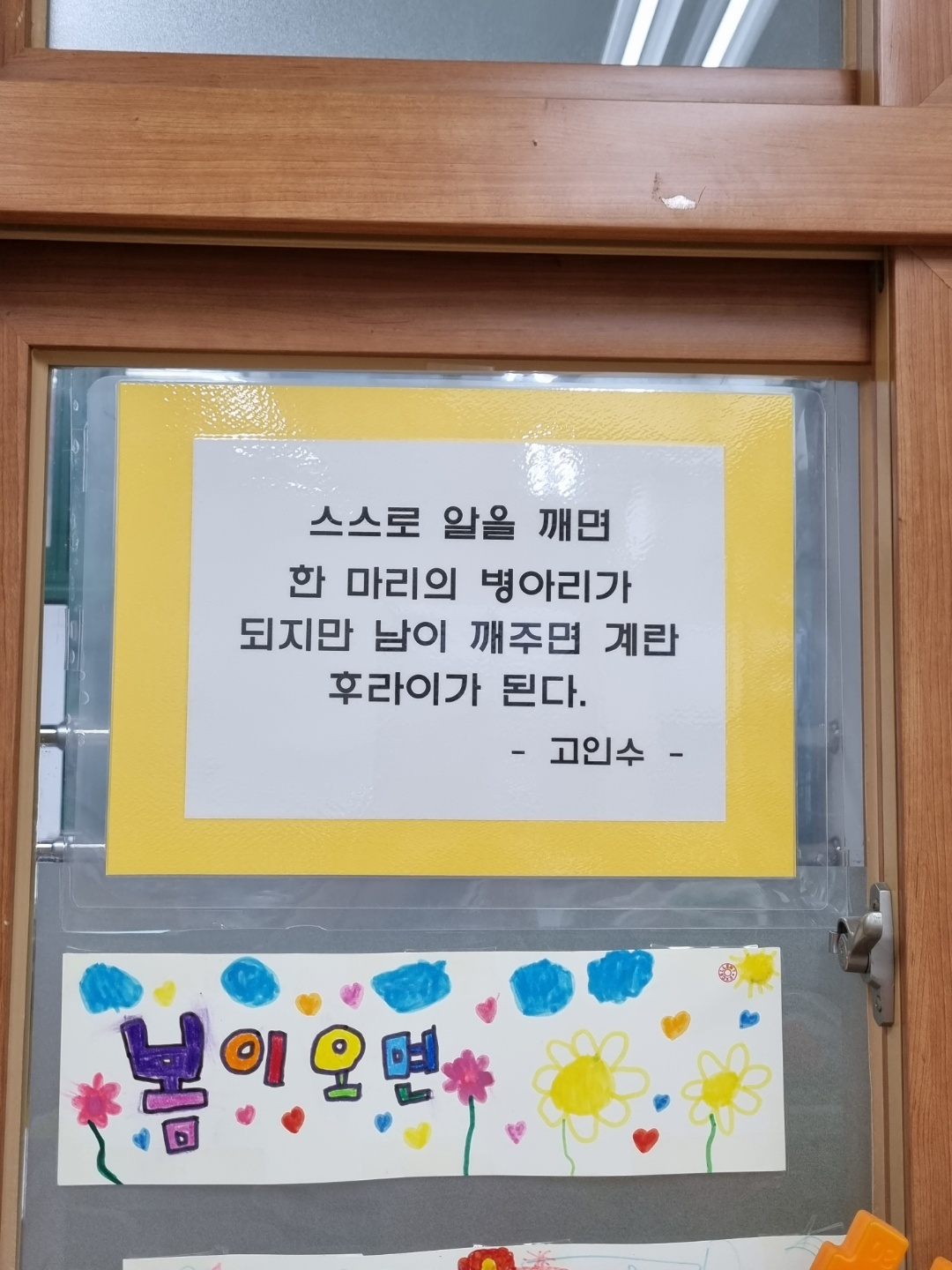 첫째의 초등학교 교실에 방문한 아내가 찍어서 보내준 글입니다